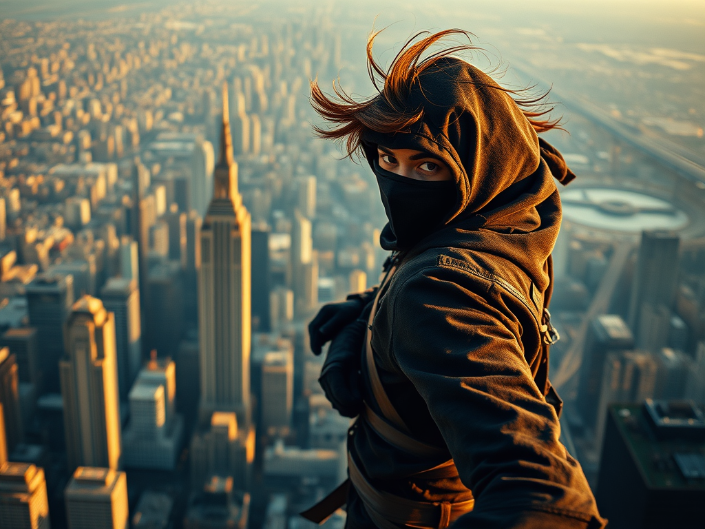 Perched on top of a skyscraper, wind whipping through my hair.